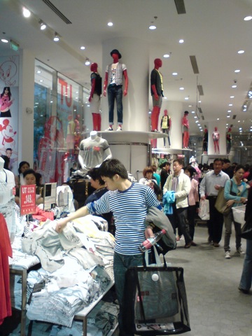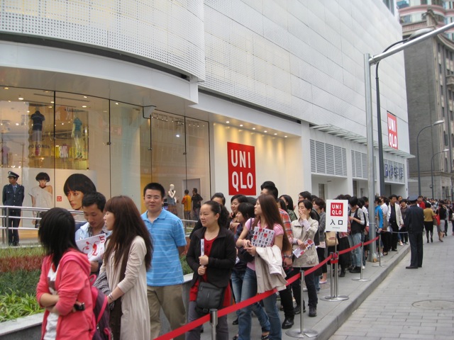 Şanghay merkezde oturanlar, veya yolu West Nanjing Road’a düşenler bilir, neredeyse son 8-9 aydır West Nanjing Road metro istasyonunun hemen çıkışındaki kocaman mağazada inşaat çalışmaları sürmekteydi.. Metronun ana caddeye bakan iki çıkışından bir tanesinde zaten Mark&Spencer mağazasını çoktan açmış durumdaydı.. Diğer çıkışta ise artık esaslı bir rakipleri var.. Japonya’nın ünlü giyim markası Uniqlo aylar süren hummalı çalışmanın ardından mağazasının açılışını geçtiğimiz haftasonu yapmış.. Yapmış diyorum çünkü İstanbul’da olduğumdan kendi gözlerimle görme şansım olamadı henüz 🙂 Aylarca her metroya inişimde göz ucuyla izlediğim çalışmaların bitmiş halini biraz geç görmüş olacağım maalesef 🙂