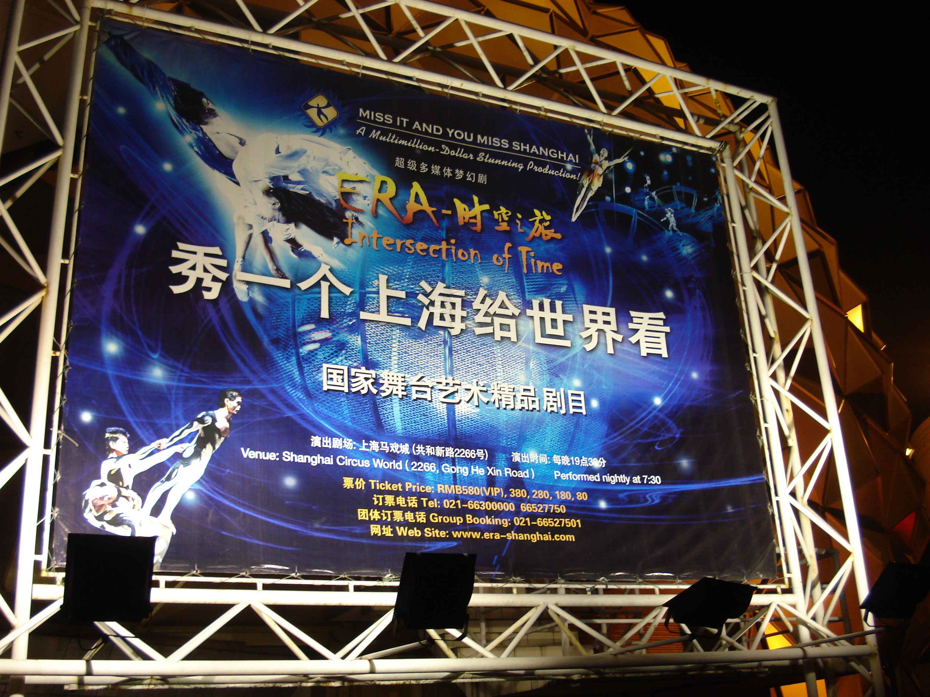 Bu akrobasi gösterisini izlemek için tek yapmanız gereken herhangi bir akşam programınızı boşaltmak.. Haftanın her günü 19:30da oynuyorlarmış.. Biz Cumartesi gününü tercih ettik, önceden rezervasyon yaptırmadan gittik ama saat 19:00 gibi hala bilet vardı.. Ama salonun 19:30 itibariyle tamamen dolduğunu da belirtmeliyim.. “ERA – Intersection of Time”ın sahneye konulduğu yer, değişik tasarımıyla göze çarpan “Shanghai Circus World” adlı mekan.. Buraya ulaşmak çok kolay.. Metronun 1 no’lu hattına binip “Shanghai Circus World” iniyorsunuz, 3 no’lu çıkıştan çıktığınızda zaten tam karşınızda göreceğiniz değişik yapı az sonra mükemmel bir gösteriye sahne olacak yer..