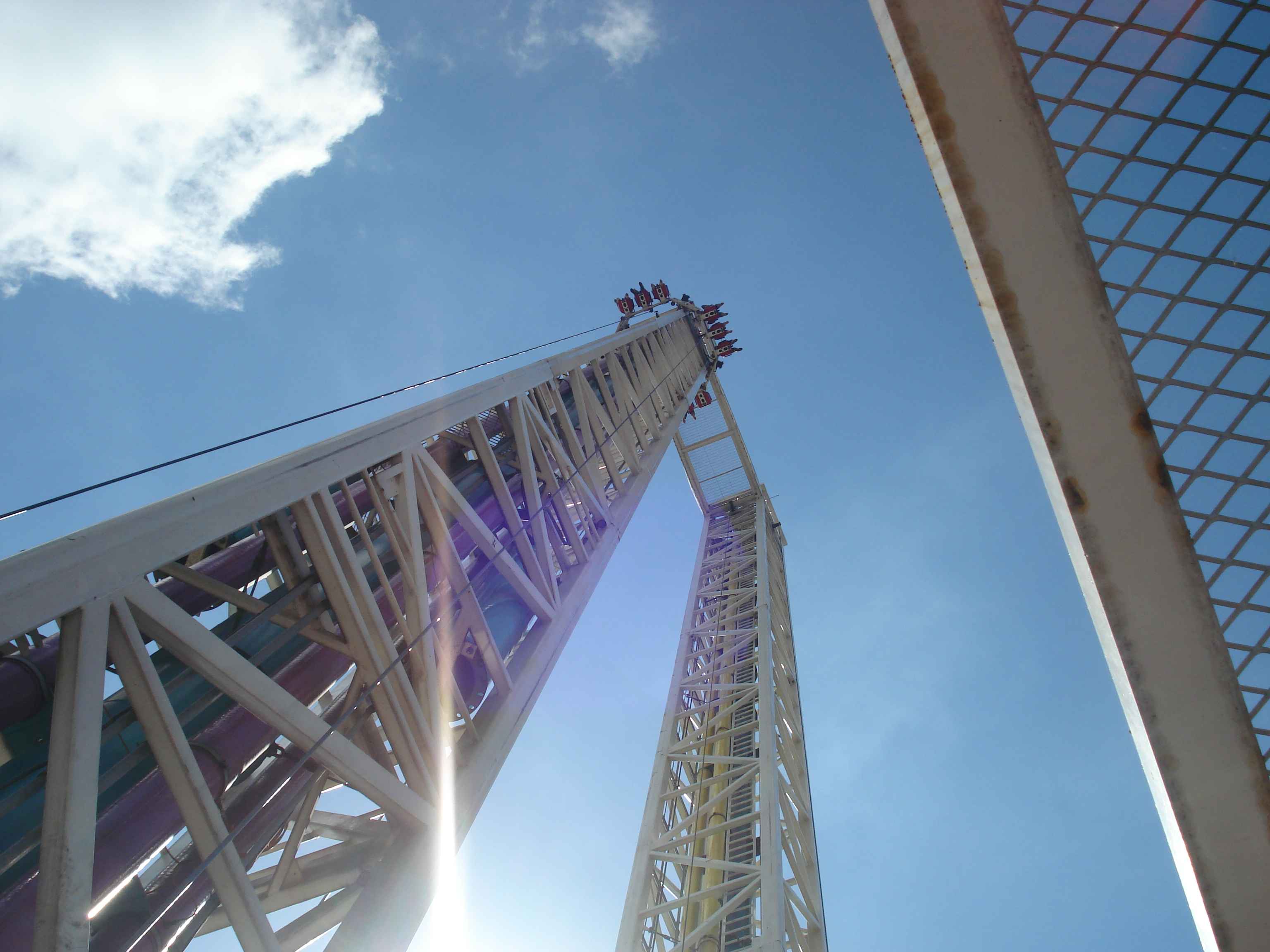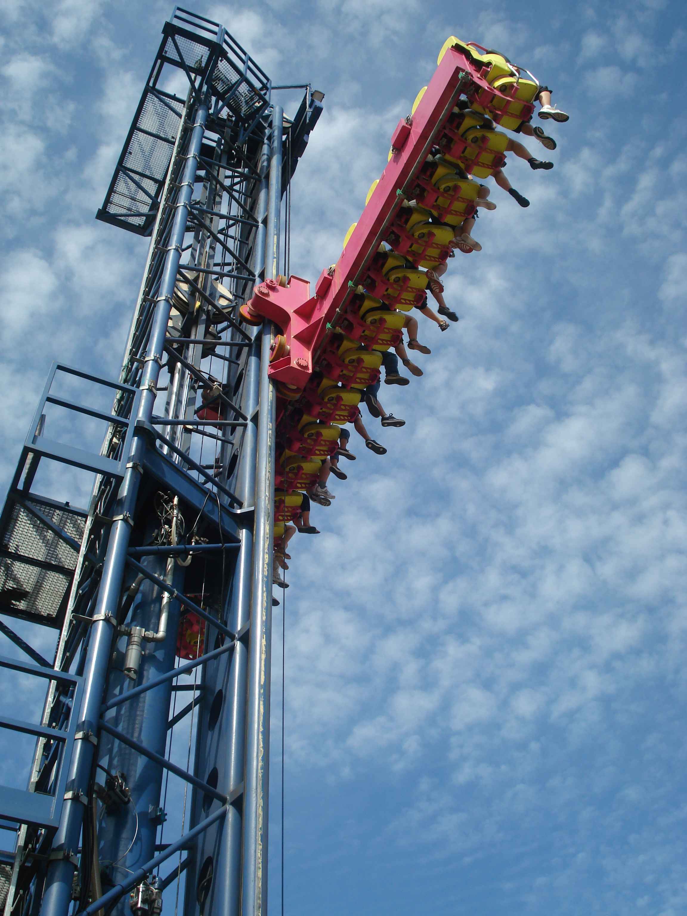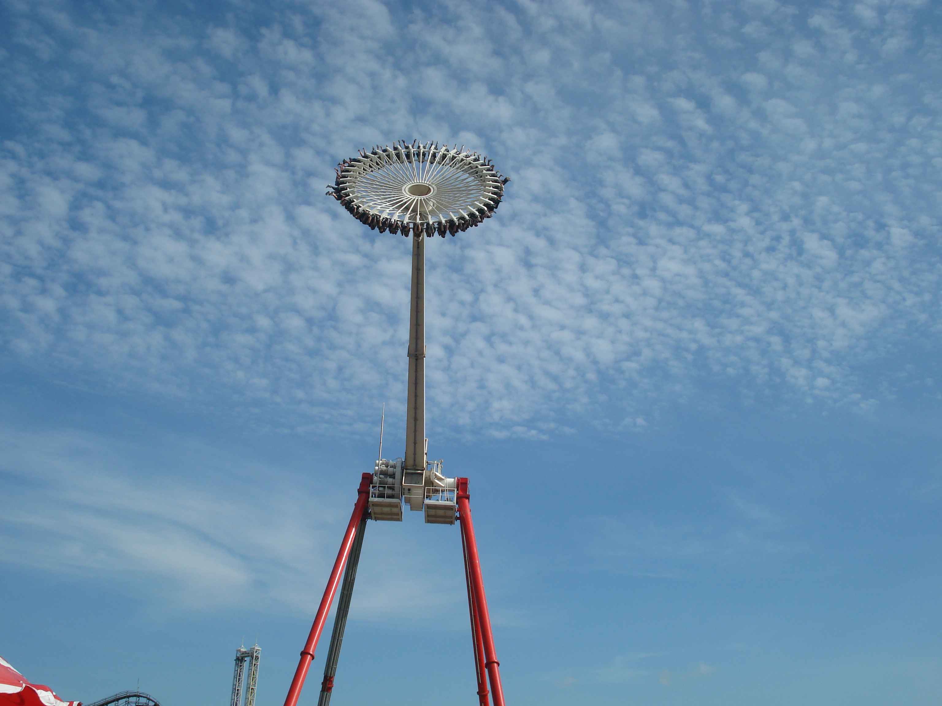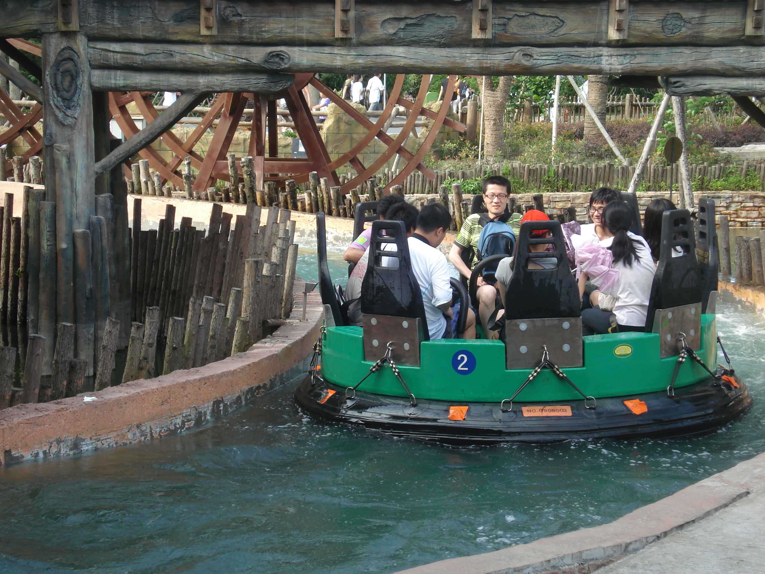 Toplamda 12 adet olan bu büyük atraksiyonlardan en ilginçlerinden, aynı zamanda Çin’de bulunan tek örnek olan, ahşap roller coaster.. Gerçekten de tamamı tahtalardan yapılmış olan kocaman bir roller coaster düşünün, işte tam olarak öyle bir şey.. Bunun dışında farklı tema alanlarında farklı roller coaster’lar da bulmak mümkün tabii.. Roller coaster’lar dışındaki büyük atraksiyonlara örnek vermek gerekirse, 26 metre yükseklikten suya fırlatıldığınız “Shoot the Chute”, kaç metre olduğunu bilmediğim ama epeyce yukarılara çıkararak sizi birden aşağı bırakan “Turbo Drop”, aynı yüksekliğe sizi aniden çıkarıp düşüren “Space Shot”, ve 60 metreye kadar çıkan ve insana delicesine çığlık attıran, coaster’ların kralı olarak da adlandırılan “Gyro Swing”.. İşte kendisi şöyle bir şey: