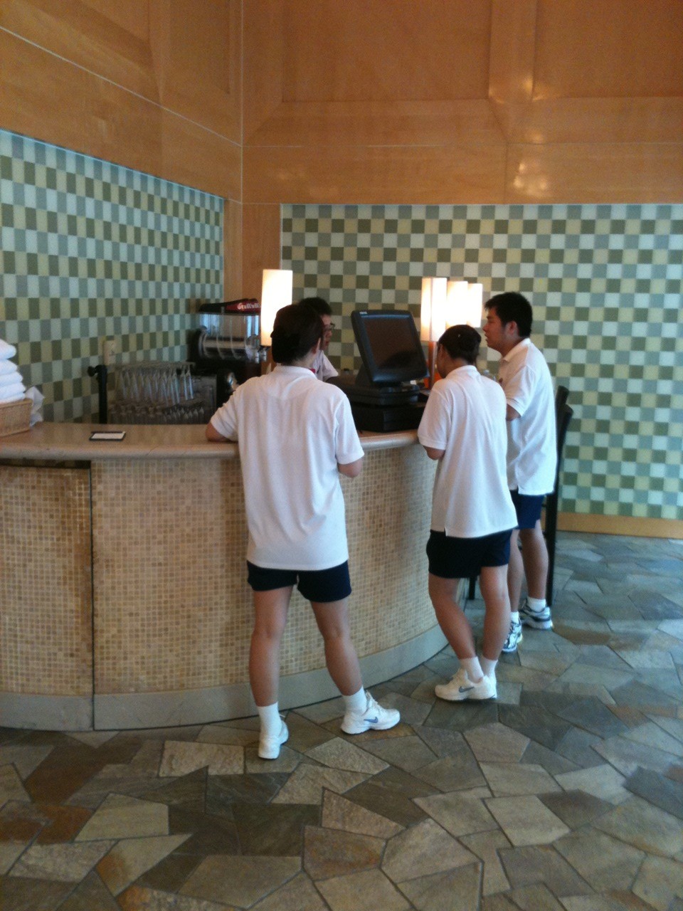 JW Marriott lokasyon olarak çok merkezi bir yerde bulunuyor.. Hemen People Square’in dibi diyebilirim hatta.. Adresi “399, Nanjing West Road – Huangpi North Road ” olarak geçiyor.. Otele girince sol taraftaki asansörleri kullanarak (her asansör ile gidemiyorsunuz yüzme havuzu kısmına) yüzme havuzlarının bulunduğu 7. kata çıkıyorsunuz.. Havuzların 7. katta olmasının avantajlarından biri de güzel bir People Square manzarasına sahip olması tabii.. 7. katta indikten sonra tabelaları takip ederek havuz bölümüne ulaşıyorsunuz.. Dışarıdan gelenler günlük 150RMB ödeyerek havuzlardan (hem kapalı hem de açık havuz aynı yerde bulunuyor) faydalanabiliyor.. Bu fiyata havlu ve sınırsız su dahil 🙂 12 yaş altı çocuklar için giriş de ücretsizmiş bu arada.. Öncelik otel müşterilerinde olduğu için dışarıdan gelenlere limitli bir yer ayrıldığını söylediler bize, detay alamadık ama her ihtimale karşı çok geç gitmemekte fayda var.. Zaten öğle saatlerinde hemen her şezlong dolmuş oluyor diyebilirim..
